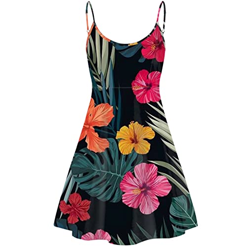 Pizding Donne Ragazze Estate Senza Maniche Abito Gonne Beachwear Taglia XS-4XL, Foglie di fiori tropicali, XXXXL