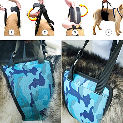 Facile da usare - Basta prendere pochi secondi per mettere l'imbracatura nelle gambe posteriori del vostro cane dopo aver rilasciato la fibbia, poi fibbia e regolare le dimensioni. E 'facile e comodo da trasportare grazie alla maniglia imbottita.