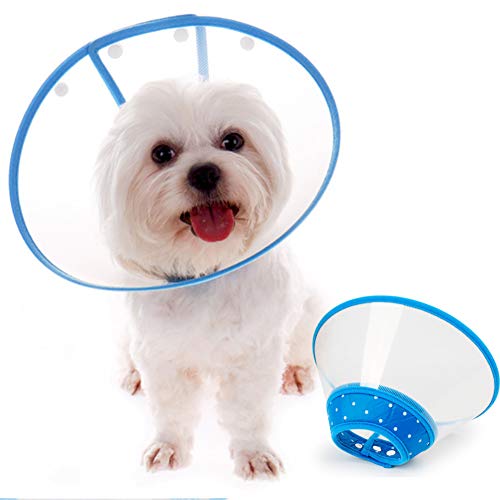PJDDP Pet Cono, Regolabile Leggero Collare Elisabettiano, Recupero Collare Comfy Cat Cono, Cono E-Collare Dopo La Chirurgia, Soft Bordo di Plastica Cane Cone per Cuccioli, Piccoli Cani E Gatti,Blu,S