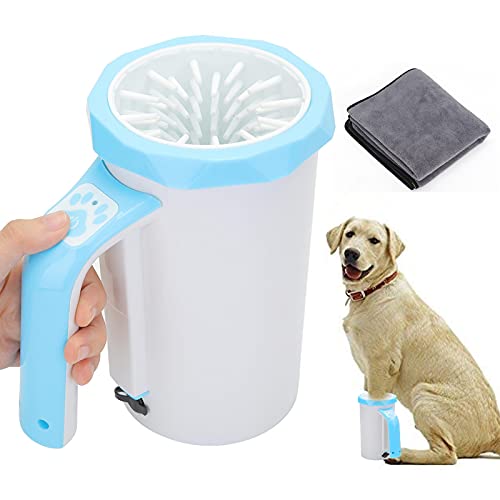 PJDDP Pulitore della Zampa del Cane Elettrico, Spazzola per Animali Domestici in Silicone con Asciugamano,Tazze Pulizia Zampa Portatile per Cani di Taglia Media per Artigli Sporchi,Blu
