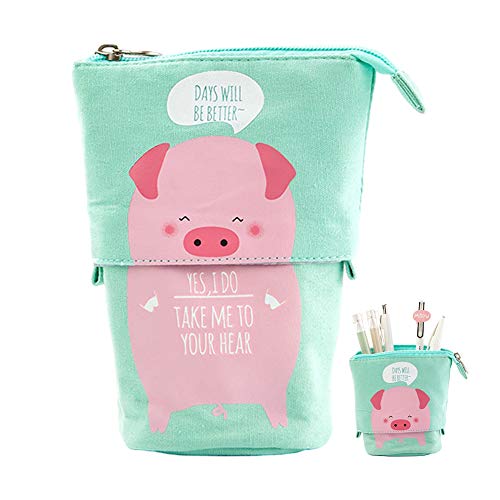 PJZJ Astuccio portapenne autoportante, Tela Astuccio Telescopico, a forma di adorabile porcin, astuccio con supporto telescopico, per materiale di cancelleria