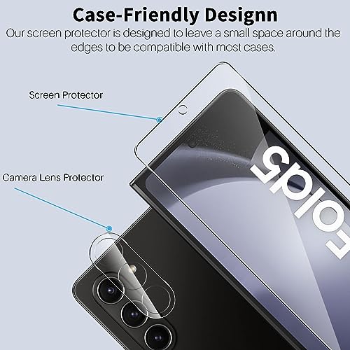 Pkila Pellicola protettiva per Samsung Galaxy Z Fold5 5G, confezione da 2 pellicole protettive + 2 pellicole protettive per obiettivo della fotocamera, durezza 9H, antigraffio, anti-impronte, HD senza