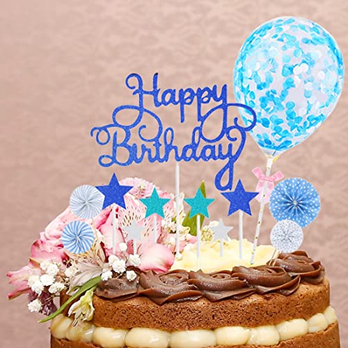 【Happy Birthday Cake Topper】Il set di decorazioni per torte include 1 topper per torta Happy Birthday + 6 stelle + 1 palloncini di coriandoli + 4 toppers ventagli di carta.diversi stili possono soddisfare le tue esigenze di decorazione della torta e rendere la torta di tuo figlio più adorabile.