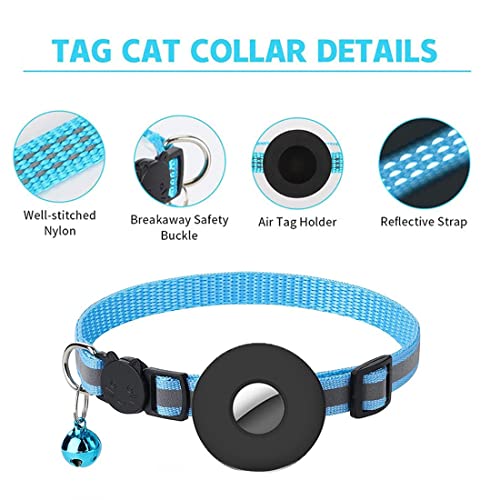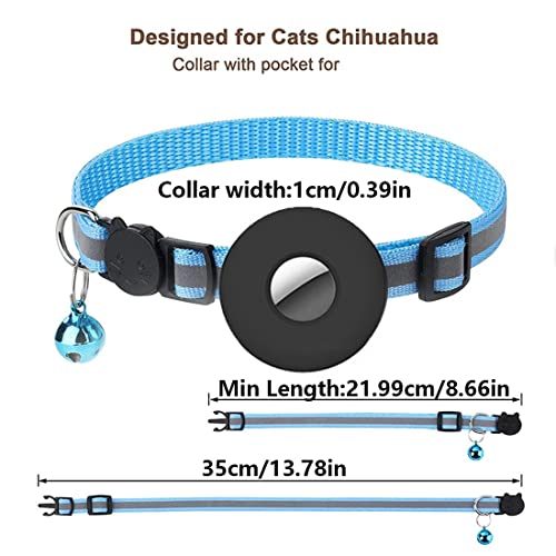 PLABBDPL Airtag - Collare per Gatti Apple Air Tag con Fibbia di Sicurezza e Campana, Collare Riflettente da 1 cm di Larghezza, con Supporto Airtag per Gatti, Cuccioli e Gattini (Blu)