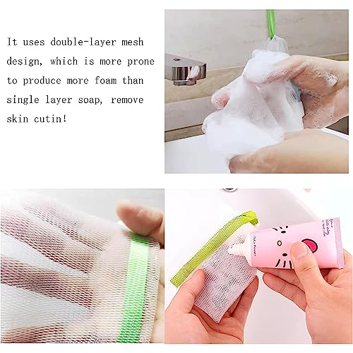 PLABBDPL Confezioni Nylon Viso Pulizia Schiumogeno Reti,10Pcs Schiuma Bolla Esfoliante Mesh Sapone Bar Sacchetto di Immagazzinaggio Cordino Holder Saver Bag Cleansing Accessorio,Colore Casuale