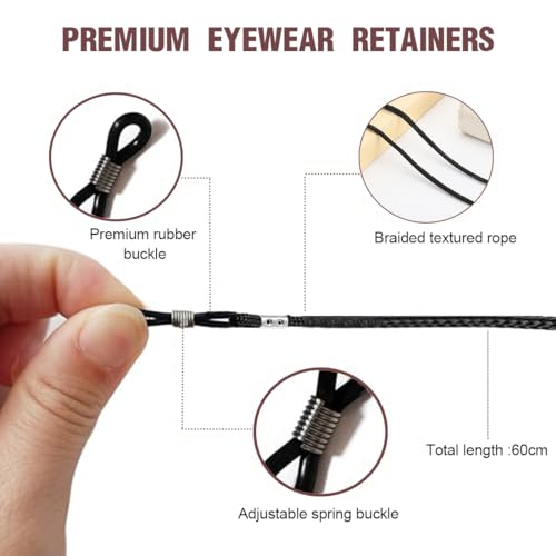 Materiale: Questi cordoncini per occhiali sono realizzati in corda di nylon(poliuretano), resistente ma morbida e pieghevole, che non si sfilaccia o rompe facilmente. Resisteranno a lungo.
