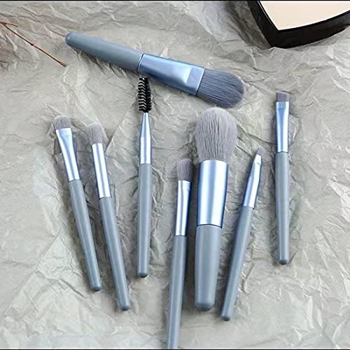 PLABBDPL Pennelli Make Up Professionali Set,8 Pezzi Set Pennelli da Trucco,con Trousse in Pelle PU Set,per Fondotinta Cipria Correttore Fard e Occhi (Blu)
