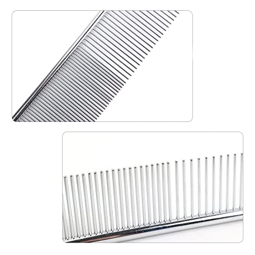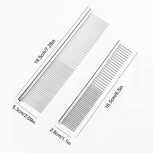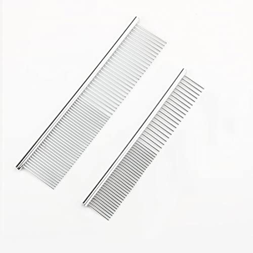 PLABBDPL Pettine in Acciaio per Animali da 2 Pezzi,Pettine per Toelettatura Animali con estremità Arrotondate Denti in Acciaio Inossidabile per Cani e Gatti con Capelli Corti/Lunghi Crespi