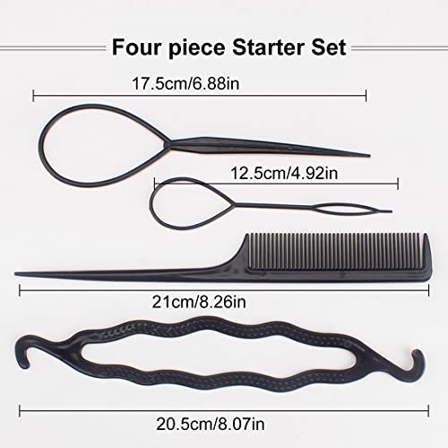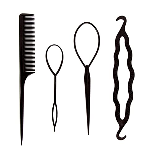 PLABBDPL 4 pezzi (1 grande + 1 piccolo + 1 pettine + 1 piastra per capelli) Kit per lo styling della coda della treccia dei capelli in plastica magica Strumento per clip per creatore di trecce di coda