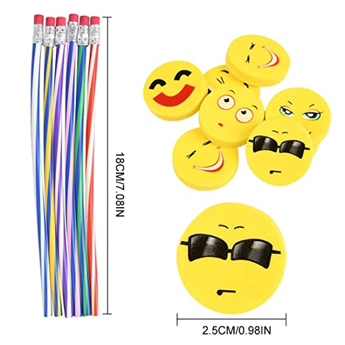 [Combinazione Perfetta] Ogni confezione contiene 16 matite flessibili ( inviati a caso) e 16 gomme da cancellare emoji ( inviati a caso). Questi divertenti materiali di scrittura possono aiutare a mantenere i bambini interessati alla scrittura e all'apprendimento.