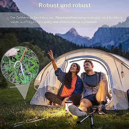 [Robusti e leggeri] - Questi picchetti per tende sono realizzati in lega di alluminio ad alta resistenza e antiruggine e possono resistere anche ai colpi di martello. Nei terreni duri, i picchetti per tenda in alluminio con estremità appuntite sono facili da martellare e non si piegano. Inoltre, i picchetti per tenda in alluminio sono più leggeri di quelli in acciaio, quindi sono i migliori per i tour di trekking.