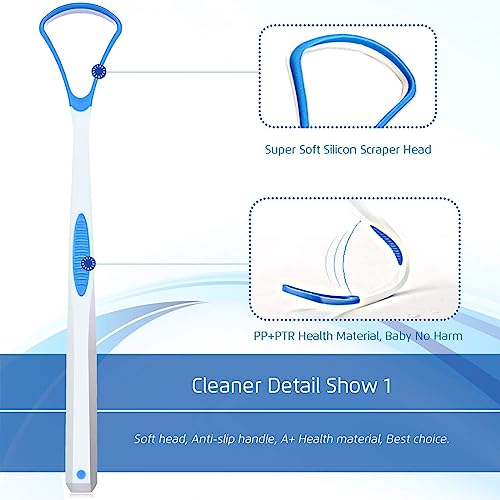 Materiali di Qualità - Sicuro e Affidabile Realizzato in PP e silicone alimentare, il raschietto per lingua è sicuro per l'uso quotidiano. Non danneggia la lingua e garantisce una pulizia efficace.