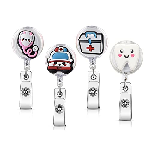 PLABBDPL Porta Badge Infermiere, 4Pcs Porta Badge Retrattile, Porta Badge a Cordoncino Retrattile, Retrattile Bobina Clip ID Badge, Feltro Badge Reel per Infermieri Volontari