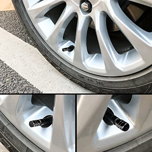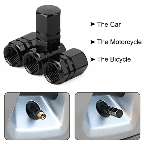 PLABBDPL Tappi per Valvole Pneumatici 4 Pezzi, Tappo Antipolvere per Ruote Auto in Alluminio, Indicatore di Pneumatici per Auto, con Tappi per Valvole Pneumatici Universali con Giunto Esagonale (Nero)