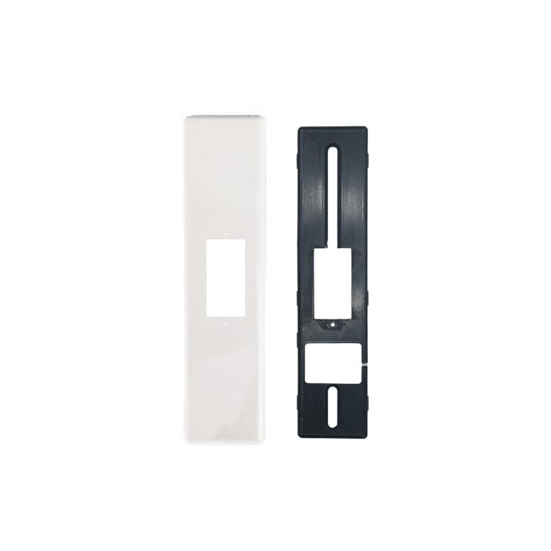 Placca bianca universale con piAstra di premontaggio con foro per pulsante.In ABS. Cassetta non inclusa Colore Grigio Satinato