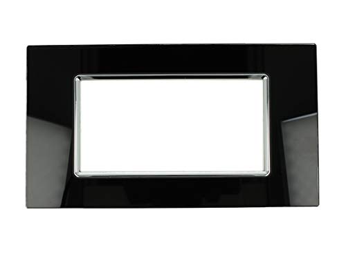 Placca Vitra 4M 7M Per Scatola 504 507 Compatibile Con Vimar Plana Materiale Plexiglass Lucido Effetto Vetro Cristallo (4M Per 4 Posti Moduli, Nero)