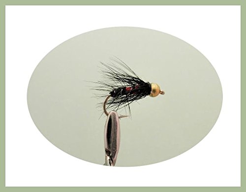12, placcata in oro, colore: nero con esche per pesca alla trota, Pennel Bibio, colore: nero, taglia 10/12