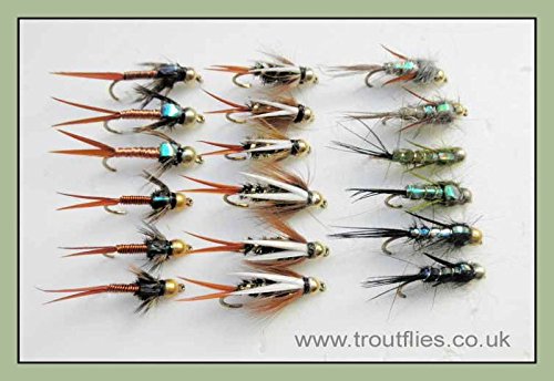 Placcata oro a 18 mosche da pesca alla trota, principe, Copper John Evil Weevil misti, 10/12/14