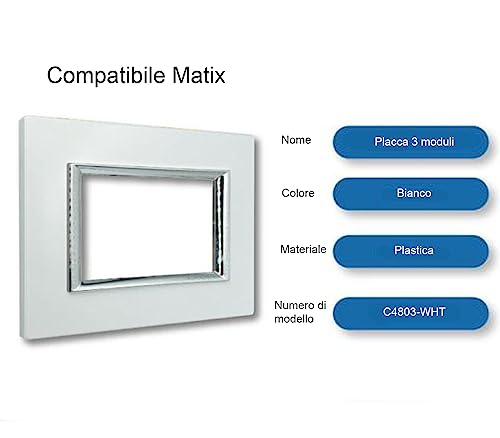 Placchetta Placca Interruttore Luci Bianca 3 Moduli Copripresa C4803 WHT
