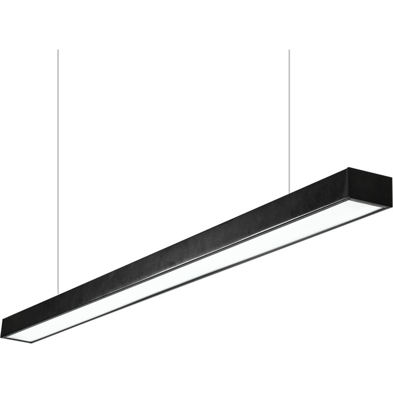 Plafoniera LED 38W 120x10x4cm da Sospensione con cavo acciaio Nero Pi-14-38W La plafoniera a led a sospensione Pi-14-38W NERO, grazie alla suo design raffinato, costituisce un elemento di arredo e di illuminazione che si adatta a diversi spazi: showroom, mostre, negozi, uffici, centri commerciale, scuole, ecc. Il diffusore opalescente antiabbagliamento offre una buona distribuzione di luce uniforme e potente. La lampada è realizzata in alluminio zincato pressofuso a freddo, leggero e resistente, inoltre i materiali di cui è costituito non necessitano di trattamenti o prodotti particolari per la pulizia. Il prodotto viene fornito di cavi per la sospensione di circa 1 metro, di facile installazione a soffitto e senza l'esigenza di un trasformatore. Un altro vantaggio di questa plafoniera è che ha una durata superiore ai classici tubi fluorescenti, ma con un risparmio a livello energetico che può arrivare fino al 30% rispetto ai neon e dell'80% rispetto alle lampade tradizionali alogene.