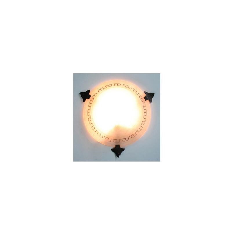 così la plafoniera ''Atena'' arreda con classe ed eterea eleganza le pareti domestiche. La struttura in ferro battuto nero è frutto del lavoro di abili mani artigiane e conferisce al prodotto robustezza e una qualità superiore. Il paralume è realizzato in vetro satinato ambrato con motivo geometrico inciso, a ricordare i fregi architettonici e le ceramiche artistiche dell'Antica Grecia. Sobrie ed eleganti, le lampade della collezione ''Atena'' aggiungono un tocco di stile ad ogni ambiente della casa. Da abbinare agli altri complementi della collezione. Dimensioni: Ø 35 ↔ x 8 ↑ cm Consiglio d'uso: Lampadario consigliato per arredare la zona giorno e le camere