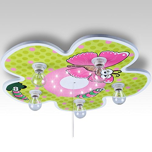 Plafoniera per Bambini - CEE: A++ a E, 5 Lampadine da 40 W Richieste, E14, con Luci LED, Forma di Fiore con Farfalla - Lampada da Soffitto, Lampadario per Cameretta, Stanza dei Bambini, da Letto