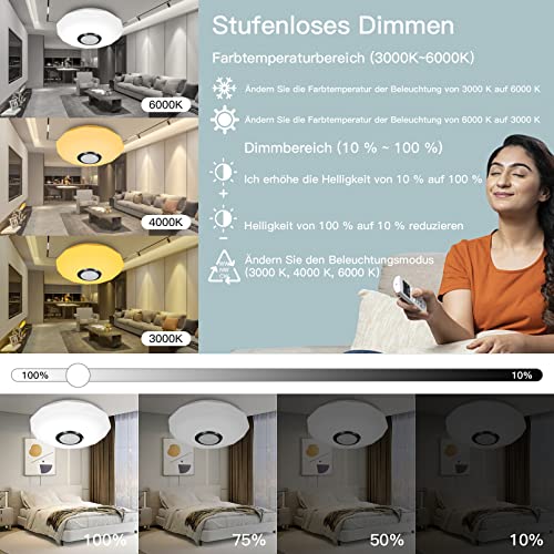Plafoniera Bluetooth Musica, 30W LED soffitto con Telecomando e Controllo APP, Dimmerabile, Luminosità Regolabile, Cambio Colore RGB, Adatta per Camera da Letto, Stanza dei Bambini, Salotto
