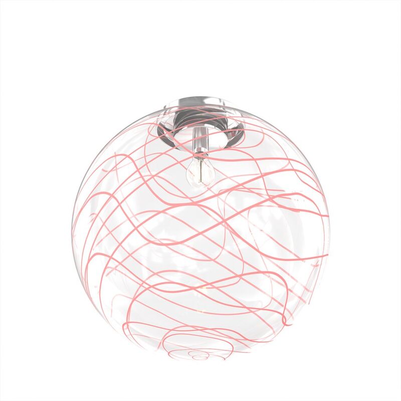 Collezione Moon LUCE E ARTE, UN CONNUBIO PERFETTO Plafoniera con un globo di vetro soffiato trasparente dal diametro di 40cm, impreziosito da una decorazione in filo di vetro in finitura rosso.. Creando un effetto di luce e colore suggestivo e romantico. La struttura è in metallo cromato, che le conferisce un tocco di eleganza e di modernità. Moon è la luce che dona fascino e personalità al tuo spazio, sia che tu la usi per illuminare il tuo soggiorno, la tua camera da letto o il tuo bagno.Questo articolo è disponibile in diverse finiture e/o dimensioni. E' possibile indicarlo nell'apposito campo NOTE presente in conclusione di ordine oppure contattarci dopo aver effettuatol'ordine.