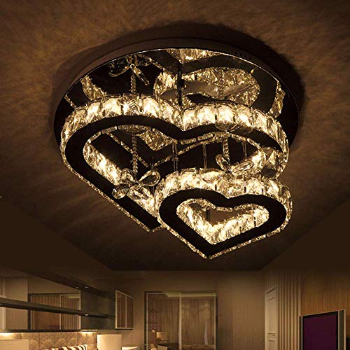 JIN Plafoniera in cristallo in acciaio inox Camera da letto corridoio Soggiorno Lampade da soffitto Taglio a forma di cuore Lampada moderna a forma di cuore LED Tricolore Dimming Lampadario Attrezzat