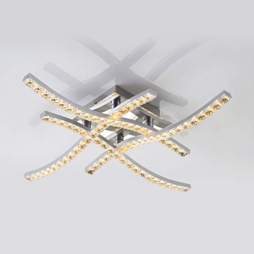 Plafoniera a LED in Cristallo, 24W Lampadario Moderna Plafoniera LED Soffitto in Cristallo, Lampada da Soffitto a forma di onda con 4 Pezzi di Luce, Bianco Caldo 3000K, per Soggiorno Camera da Letto