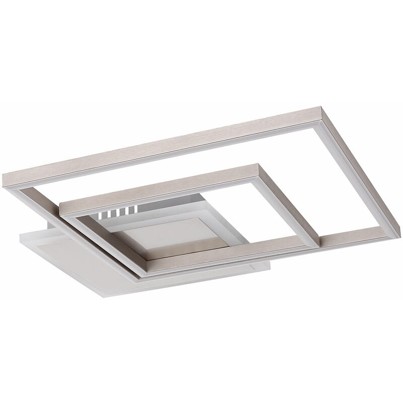 Descrizione Un meraviglioso eye-catcher illumina la tua zona giorno: questa plafoniera LED dal design rettangolare affascina con il suo design moderno. È ideale per illuminare ambienti di grandi dimensioni e anche per uffici. L'intensità luminosa di 1820 lumen e 3000 Kelvin (bianco caldo) garantiscono una luce piacevole. Viene consegnato con due lampadine LED installate in modo permanente. Portate la moderna plafoniera LED a casa vostra e lasciatevi convincere dall'impressionante esperienza luminosa! La sorgente luminosa è installata in modo permanente nella lampada. Lampada dettagli • Tipo di lampada: plafoniera • Materiale: metallo, acrilico • Colore: nichel opaco, bianco opalino • Lunghezza x larghezza x altezza in cm: 37 x 37 x 5,5 • Sorgente luminosa: LED • Potenza lampada: 30 watt • Flusso luminoso: 1820 lumen • Colore della luce: bianco caldo • Alimentazione: 230V, 50Hz Dettagli lampadine • Tipo di lampadina: LED • Flusso luminoso: 1820lm (lumen) • Consumo energetico: 30
