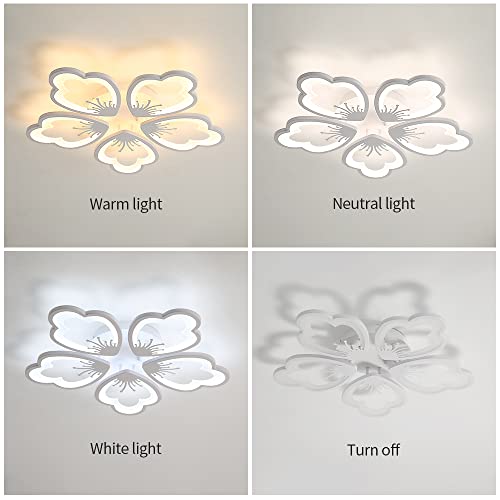 Plafoniera Led Dimmerabile, Lampada da Soffitto Moderna Creativo Elegante Design Forma di Fiore, 60W 5100LM Lampadario in Acrilico con Telecomando per Soggiorno, Camera da Letto, Sala da Pranzo
