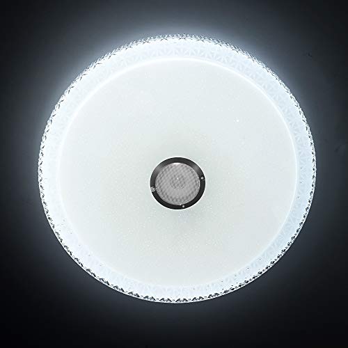 Plafoniera dimmerabile con telecomando e altoparlante Bluetooth da 24 W, Ø 40 cm, paralume in cristallo (imitazione, in acrilico) per soggiorno, camera da letto, cucina e sala da pranzo