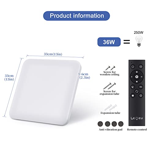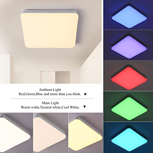 RGB Plafoniera LED Dimmerabile con Telecomando, LEOEU 36 W 3600LM RGB Lampada da Soffitto Dimmerabile con 7 Colori, IP54 Lampada da Bagno per Soggiorno, Camera da letto, Cameretta dei Bambini