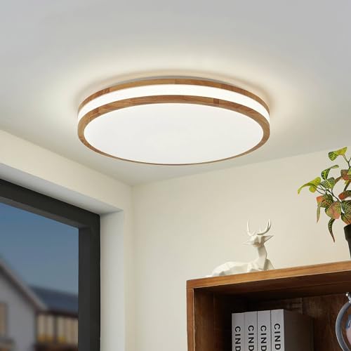 Plafoniera 'Emiva' dimmerabile a controllo remoto (Moderno) colore Ocra, in Legno ad es. Soggiorno & Sala da pranzo (1 luce, lampadina inclusa) di Lindby | plafoniera in legno, plafoniera, lampada