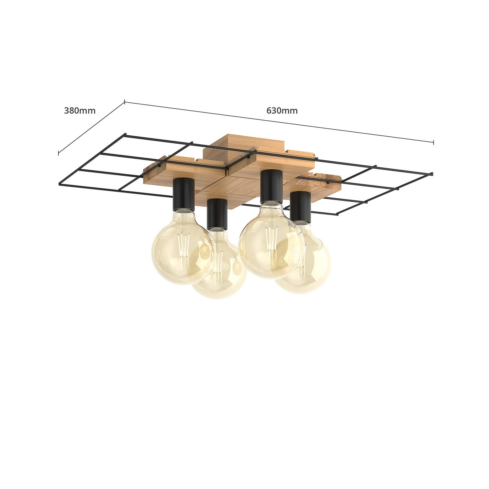 Plafoniera Bridge a 4 luci in griglia metallica con elementi in legno incastrati La plafoniera Bridge è costituita da una griglia metallica nera, rettangolare, composta da 15 piccoli quadrati. Al centro della struttura metallica sono incastonati cinque elementi in legno, quattro dei quali hanno un portalampada nero. Grazie al suo design insolito e alla combinazione di materiali, la plafoniera è un bellissimo richiamo visivo ed è adatta per illuminare, ad esempio, il corridoio, il soggiorno o la camera da letto. Le sorgenti luminose al centro dell'apparecchio sono libere, rendendo particolarmente adatto l'uso di sorgenti luminose decorative. Queste possono essere scelte liberamente in base alla portalampada appropriata, in modo che le condizioni di illuminazione possano essere adattate in modo ideale alle idee e alle esigenze individuali. Le fonti luminose sono dirette verso il basso, ma fanno luce in tutte le direzioni. La plafoniera è un prodotto del marchio Envostar ed è fabbricata in Europa. I percorsi di trasporto che ne derivano sono brevi e hanno un effetto positivo sulle emissioni di CO2. Il legno di quercia utilizzato è certificato FSC e proviene da aree forestali gestite in modo sostenibile. Per l'imballaggio non sono stati utilizzati materiali monouso come plastica o polistirolo.