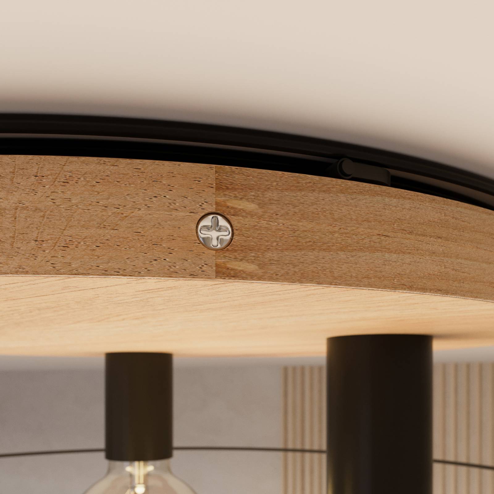 Plafoniera Bridge a 3 luci con rosone in rovere e paralume in metallo La plafoniera Bridge a 3 luci colpisce per i materiali in rovere e metallo e per il design delicato del paralume. Il rosone in legno appare molto robusto in contrasto con il paralume aperto. Questo contrasto rende la plafoniera un bellissimo richiamo visivo, mentre la forma rotonda della plafoniera conferisce all'intero design un aspetto molto armonioso. Le tre prese di corrente attaccate al rosone sono prive di ostacoli, rendendo particolarmente adatto l'uso di sorgenti luminose decorative. La sorgente luminosa può essere selezionata individualmente in base alla portalampada corrispondente. In questo modo è possibile adattare le condizioni di illuminazione alle preferenze personali. Bridge è ideale per illuminare il corridoio, il soggiorno o la camera da letto. La plafoniera è un prodotto del marchio Envostar ed è fabbricata in Europa. I percorsi di trasporto che ne derivano sono brevi e hanno un effetto positivo sulle emissioni di CO2. Il legno di quercia utilizzato è certificato FSC e proviene da aree forestali gestite in modo sostenibile. Per l'imballaggio non sono stati utilizzati materiali monouso come plastica o polistirolo.
