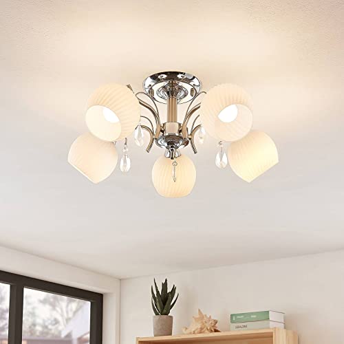 Plafoniera 'Feodora' dimmerabile colore Argento, in Vetro ad es. Soggiorno & Sala da pranzo (5 luci, E14) di Lindby | plafoniera, lampada