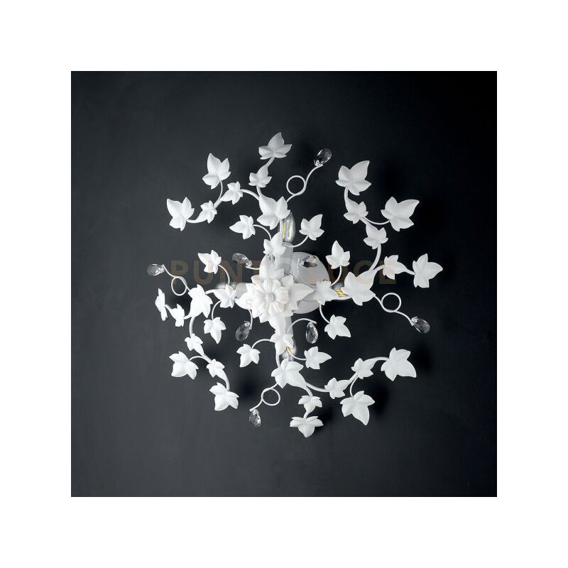 Plafoniera in ferro laccato bianco con decorazione effetto shabby chic e strass in cristallo 4 luci