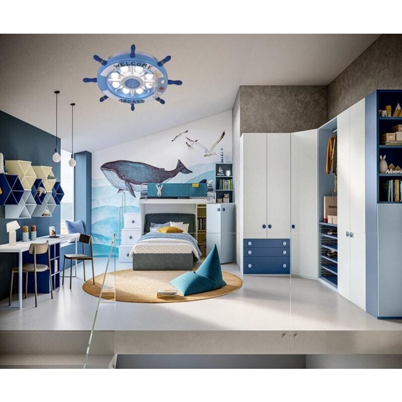 Questa plafoniera a led adotta un design con forma di timone mediterraneo con colore blu per renderlo bello quando è acceso. Questa lampada da soffitto a led è particolarmente adatta per la cameretta di un bambino o snack bar ristoranti case vacanza mare. Dimensioni e dati: diametro: 60 cm altezza-spessore: 4.5 cm sorgente luminosa: led 40 watt flusso luminoso: i lumen variano in base alla tonalità impostata: 3280 lumen luce naturale 40 watt 1600 lumen per luce calda 20 watt e bianca fredda 1600 lumen 20 watt. Materiale: metallo + acrilico il led. Fornisce un atmosfera accogliente e può essere utilizzato come decorazione. Caratteristiche: Tensione di ingresso: ac 220-240v 50/60hz Potenza luce calda: 3000k 20w 1600lm Potenza luce bianca fredda 6500k 20w 1600lm Potenza luce naturale: 4000k 40w 3280lm Fascio luminoso: 300 Materiale: metallo e legno Colore: blu e bianco Diametro: 60 cm Peso: 2.4 kg Contenuto della confezione: N 1 Lampadario Cod. E81-3C