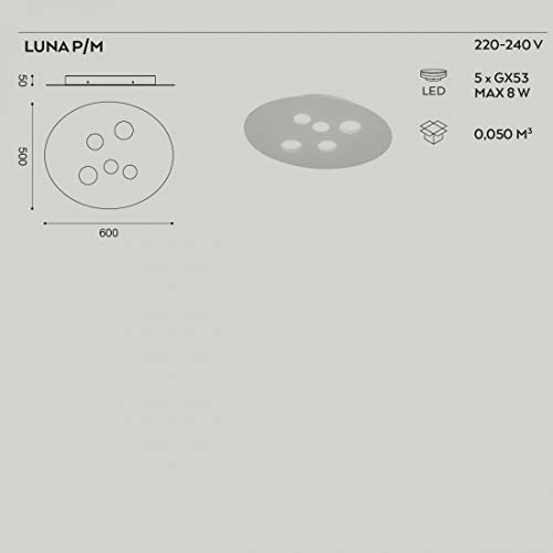 Plafoniera Ge-luna Pm Gx53 Led 60x50 Alluminio Metacrilato Lampada Soffitto Moderno Interno, Bianco opaco