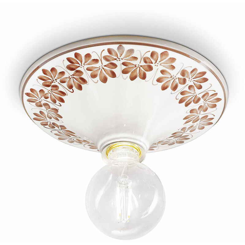 Collezione Trieste FORME MINIMALISTE IMPREZIOSITE DA DECORI ORIGINALI Plafoniera in ceramica decoro Filo marrone frutto di una lavorazione eseguita rigorosamente a mano.. L'equilibrio tra materiali di alta qualità e artigianato meticoloso rende questa plafoniera un pezzo unico che aggiunge un tocco di raffinatezza e stile a qualsiasi spazio. Perfetto per illuminare con classe salotti, sale da pranzo o ambienti commerciali, questo prodotto diventa il punto focale dell'arredamento, creando un'atmosfera accogliente e sofisticata. Lasciati sedurre dalla sua bellezza senza tempo e regala al tuo ambiente un'illuminazione di classe. I decori si possono scegliere in base ai propri gusti e/o esigenze. E' disponibile anche nei colori Argento, Bianco, Bianco Sfumato Argento, Bianco Sfumato Oro, Nero, Nero Sfumato Argento, Nero Sfumato Oro, Nero Sfumato Rame, Ruggine, Verde Sfumato Oro, Ottone Brunito, Ottone Satinato, Nickel Satinato, Cromo.
