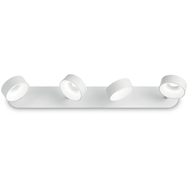 Montatura in metallo verniciato bianco opaco, con snodi cromati. Corpo luce orientabile con diffusore in materiale plastico bianco. L 550 x H 135 x P 80 mm LED 24W 20000 h 3000 K 2800 lumen IP:20