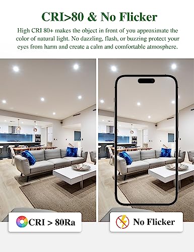 【3 Color Temperature Adjustable & Memory Function】LED recessed Ceiling Light adopts a 3CCT design, warm white 3000K neutral white 4000K cool white 6000K can be adjusted with a regular wall switch, so you can freely choose the light color that best suits your room atmosphere. Not dimmable, do not use it with dimmers