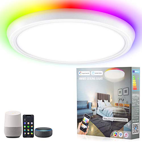 35W Plafoniera LED Intelligente, Ansody WiFi Plafoniera Compatibile con Alexa e Google Assistant, Cambio Colore RGB Dimmerabile, 2400LM Lampada da soffitto con Telecomando per Soggiorno, Bagno, Cucina