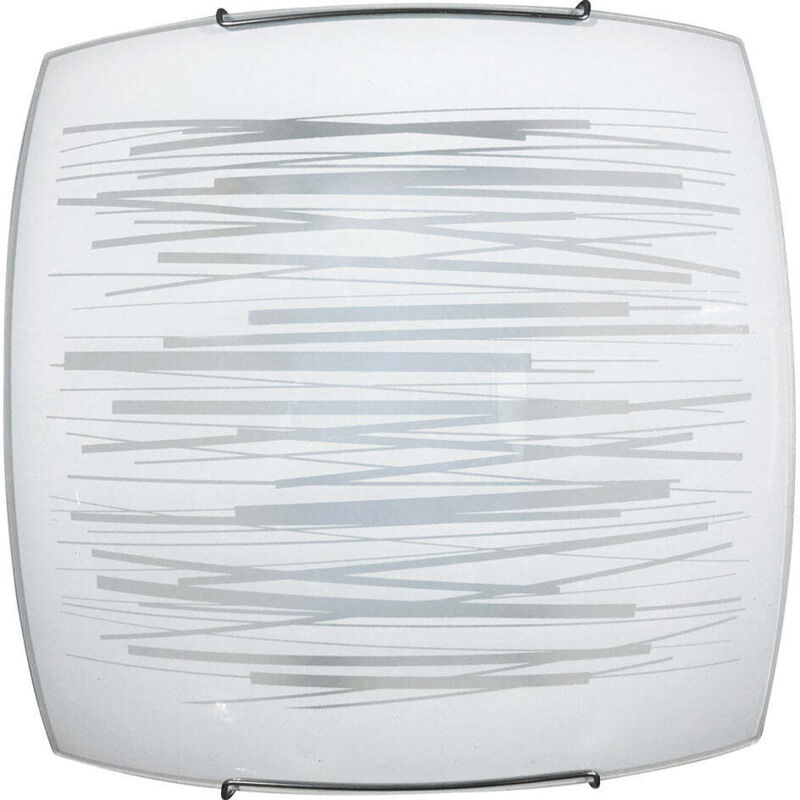 Dalla linea dedicata all'illuminazione da interno a marchio E - ENERGY, laplafoniera quadrata MANUELA in vetro, è caratterizzata da un decoro trasparente raffigurante linee veloci e astratte sulla parte centrale, che rendono questa plafoniera perfetta per ambienti dallo stile moderno e contemporaneo, il diametro da trenta centimetri la rende idonea ad essere installata asoffitto in ambienti medio - piccoli come stanzette o disimpegni e i gancicromati enfatizzano i toni moderni e luminosi della plafoniera. Grazie alla presenza di un attacco standard E27, sarà possibile inserirvi lampadine a bassissimo consumo energetico a LED abbinando così efficienza luminosa ad una resa di illuminazione sempre adeguata allo spazio dove viene installata.