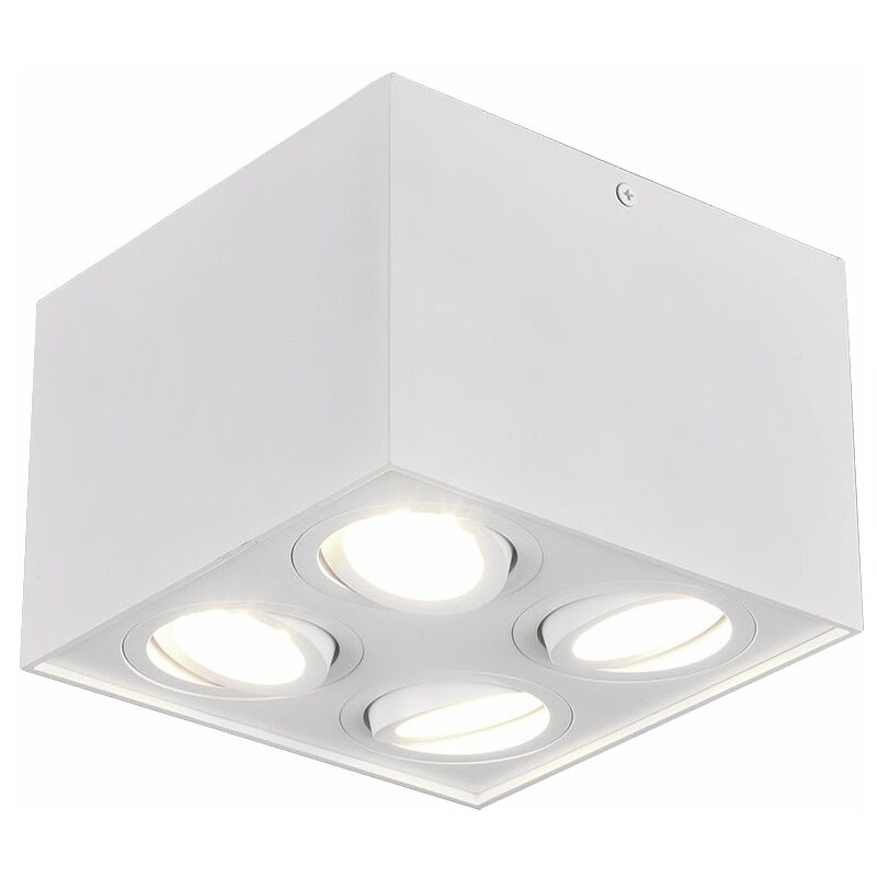 Plafoniera Plafoniera da Interno GU10 in Metallo Bianco Opaco Biscuit Cubo Bianco 4 Spots Orientabili L. 17,8 X 17,8Cm H. 12,5Cm Caratteristiche Tecniche Stile Moderno Fonte di luce principale: Lampadina (non Inclusa) Attacco GU10 Materiale: Metallo Colore Finitura: Bianco Opaco Potenza (W): 3 Lumen: 250 Kelvin: 3000K Alimentazione (V): 230 Durata Nominale (h): 20000 Numero Accensioni: 20000 Classe energetica: F Larghezza (cm): 17,8 Altezza (cm): 12,5 Profondita (cm): 17,8 Peso netto (kg): 1,7