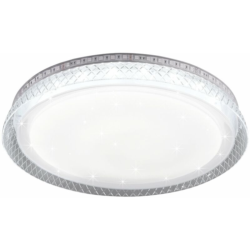Plafoniera Plafoniera da Interno a LED in Plastica Bianco Thea Plafoniera Led Diffusore Bianco Effetto Stelle Con Bordo Trasparente Con Rgb Retro-Illuminato E Telecomando Multifunzione D.38 Caratteristiche Tecniche Stile Moderno Fonte di luce principale: Inclusa a LED Materiale: Plastica Colore Finitura: Bianco Potenza (W): 18 Altezza (cm): 5,5 Diametro (cm): 38 Peso netto (kg): 0,982