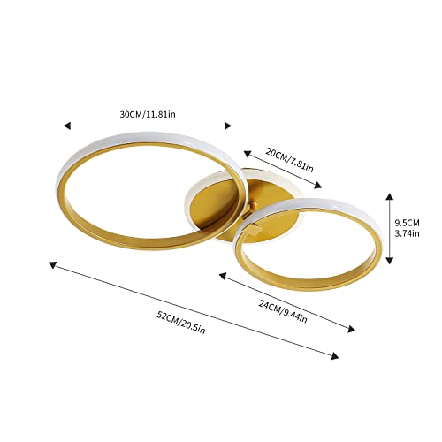 【Dimensioni】: La plafoniera led soffitto oro ha una lunghezza totale di 52 cm e un'altezza di 9,5 cm. Il cerchio grande ha un diametro di 30 cm, il cerchio piccolo ha un diametro di 24 cm e il telaio ha un diametro di 20 cm. Potenza: 42W, luce bianca 6000K, 3500LM. Sorgente luminosa: LED. Dispositivo fisso, non ruotabile. Non dimmerabile.