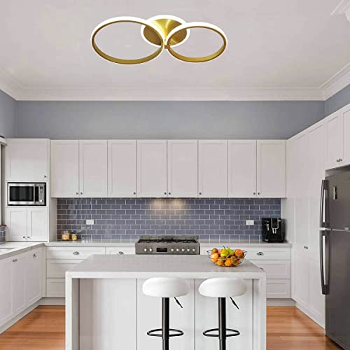 【Design rotondo moderno】: La moderna plafoniera a led circolare geometrica creativa è una forma geometrica composta da tre cerchi dorati e anche il telaio può brillare. Unico design nordico minimalista, l'illuminazione ambientale a 360 °, che illumina l'intera stanza, è la prima scelta per la decorazione dell'illuminazione.